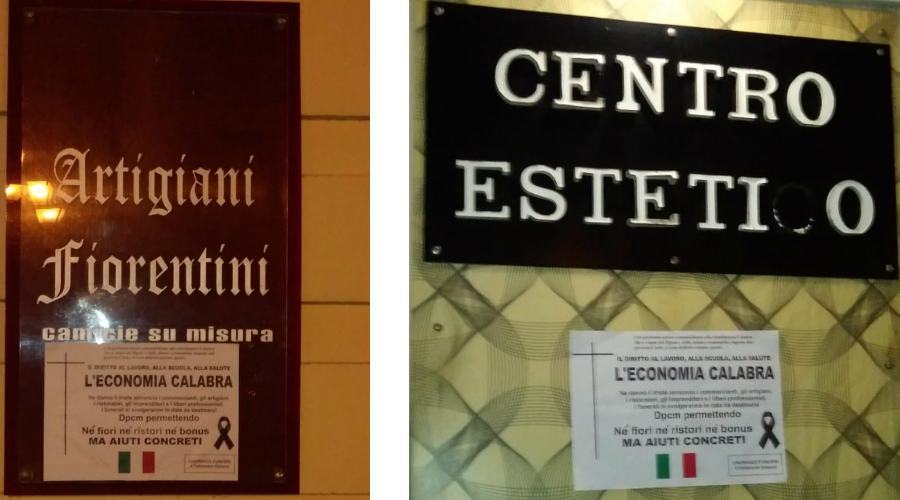 Calabria zona rossa, sulle serrande ‘manifesti funebri’ per la morte dell’economia