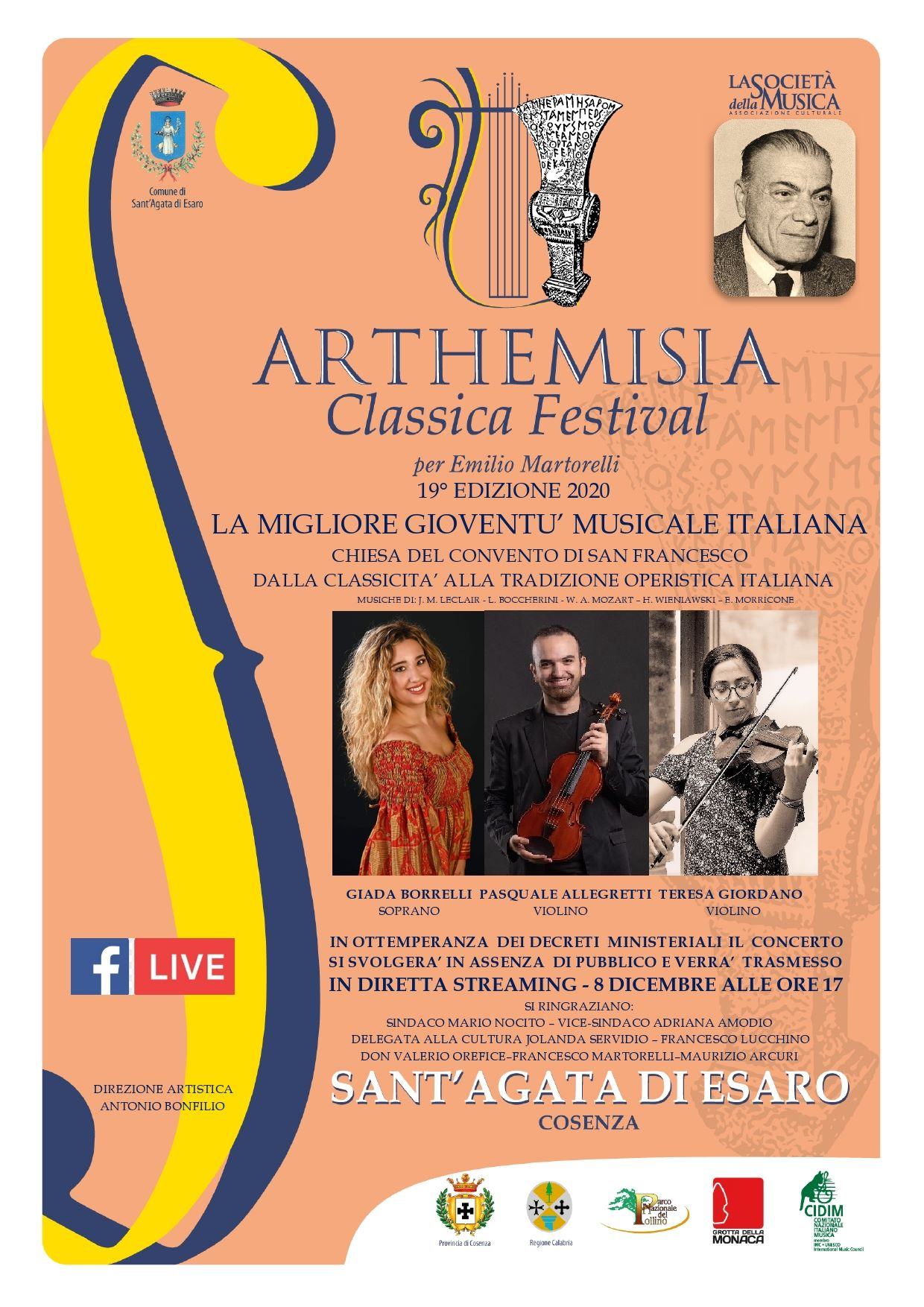 “Cari amici calabresi, mai come in questo momento ci legano le radici d’origine comuni e la preoccupazione, ma anche la speranza per la ricerca di una indispensabile serenità pur nella più preoccupante emergenza sanitaria che si ricordi. Ma poiché Arthemisia Classica Festival per Emilio Martorelli – si legge in una nota di Antonio Bonfilio, Direttore Artistico del Festival – merita di veder riconosciuta e storicizzata, nell’ambito dei finanziamenti alla Cultura della Regione Calabria, la sua lunga e ininterrotta continuità, abbiamo deciso di realizzare un unico evento entro la fine dell’anno in corso, in data 8 dicembre, giorno dell’Immacolata Concezione nella Chiesa del Convento di San Francesco. Per tutto ciò voglio esprimere il mio sincero ringraziamento alla nuova Amministrazione che ha deciso di confermare il Patrocinio e di sostenere il concerto, condividendo con la Direzione del Festival e la famiglia del Maestro Martorelli, dedicatario della rassegna, lo spirito, le aspettative e la progettualità di Arthemisia Classica Festival, anche in un momento così difficile in cui la musica può contribuire con il suo beneficio a darci la forza e la speranza per ritrovare la vitale serenità d’animo. Voglio ringraziare personalmente il Sindaco Mario Nocito, il Vice-Sindaco Adriana Amodio, la Delegata alla Cultura Jolanda Servidio, Francesco Lucchino, Francesco Martorelli, Don Valerio Orefice, Maurizio Arcuri per la loro preziosa sensibilità”.