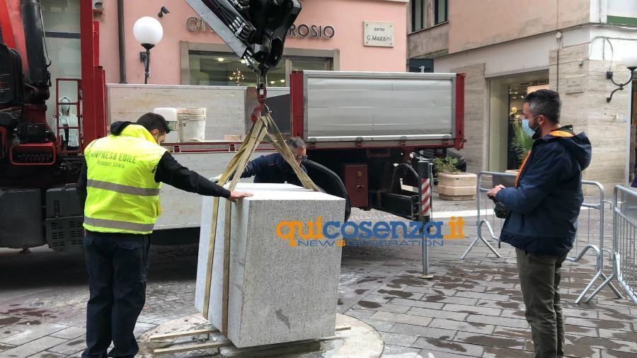COSENZA – La prima opera installata è quella dell’artista Umberto Mastroianni, “senza titolo”, che è una scultura in bronzo posizionata nel tratto di corso Mazzini dove è in fase di ultimazione la nuova pavimentazione, nei pressi della fontana di Giuno, davanti Palazzo dei bruzi.