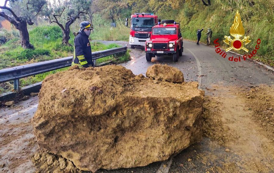 ORSOMARSO (CS) – Il maltempo delle ultime ore, che sta colpendo in particolare l’alto Tirreno cosentino con piogge e violente grandinate, ha provocato questa mattina uno smottamento in prossimità del bivio per Orsomarso sulla Strada Provinciale 9, che ha portato alla caduta di un grosso masso sulla sede stradale. Attualmente la Strada Provinciale 9, nel tratto interessato dalla frana, è stata chiusa al transito per ulteriori accertamenti e verifiche della situazione a monte della strada. Si tratta di un tratto viario della ex SS 18 che dal Ponte Lao, nel comune di Orsomarso, attraversa i comuni di Santa Maria del Cedro, passando dalla frazione di Marcellina, Grisolia e Diamante, nella frazione di Cirella. Sul posto è intervenuta una squadra dei vigili del fuoco del comando provinciale di Cosenza, distaccamento di Scalea, insieme ai tecnici comunali e quelli della provincia di Cosenza.