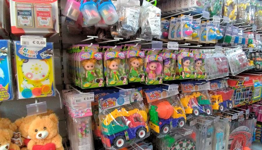 La merce, di scadente fattura, era priva del marchio CE e non riportava alcuna indicazione in ordine ai materiali di assemblaggio. Alcuni articoli al semplice maneggio perdevano dei minuscoli pezzi, facilmente ingeribili, rivelandosi pertanto estremamente pericolosi. Oltre al sequestro delle merce, sono state comminate sanzioni amministrative ai due titolari pari a 6000 euro.