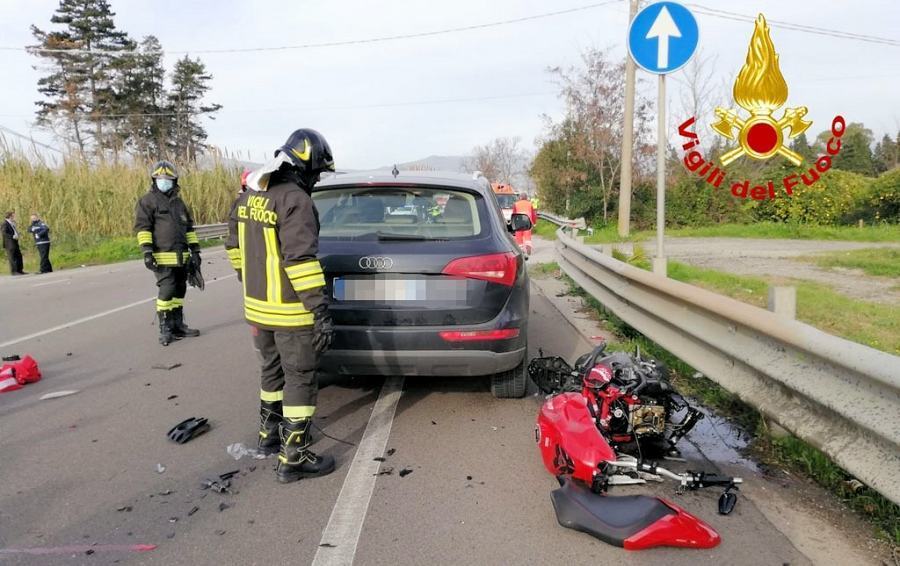 LAMEZIA TERME (CZ) – Era a bordo della sua moto, una Ducati di grossa cilindrata, quando si è scontrato con una Citroën C5, sulla Statale 19 in direzione di Lamezia. È stato mortale l’incidente per un centauro di 41 anni, C.G., originario di Taurianova. Nel violento impatto la motocicletta si è spezzata in più parti e il conducente è morto sul colpo. Nell’impatto è rimasta coinvolta anche una seconda vettura, un’Audi Q5. Al momento sono in corso gli accertamenti per ricostruire la dinamica del sinistro. I passeggeri delle auto, in evidente stato di shock, sono stati affidati alle cure del personale sanitario del 118. Sul posto, è intervenuta una squadra dei Vigili del fuoco del distaccamento di Lamezia Terme per mettere in sicurezza il sito e i mezzi coinvolti nell’incidente. Sul posto anche carabinieri, polizia locale e medico legale per gli adempimenti di competenza.