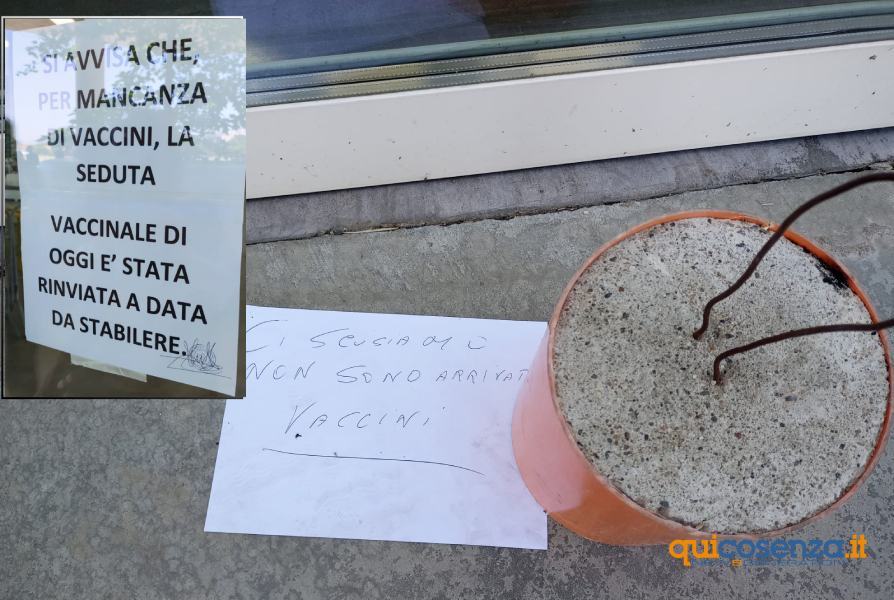 RENDE – Comunicazioni improvvisate e singolari al Parco Acquatico di Rende dove, questa mattina, per informare i cittadini della mancanza dei vaccini, è stato affisso un foglio A4 con su scritto: «Si avvisa che, per mancanza di vaccini, la seduta vaccinale di oggi è stata rinviata a data da “stabilere“». Se non bastava l’errore si aggiunge un foglio posizionato per terra fermato da un blocco di cemento con scritto a penna «ci scusiamo, non sono arrivati i vaccini».