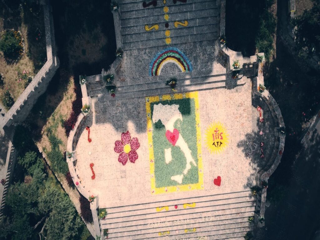 Montalto Uffugo – In 60 secondi vi mostriamo le suggestive immagini dell’infiorata di Montalto Uffugo. I colori di migliaia di petali adornano l’imponente scalinata del Santuario di Santa Maria della Serra, patrimonio d’arte barocca, nel centro storico di Montalto Uffugo e inserita tra i siti d’arte Unesco. In occasione della solennità del Corpus Domini, il gruppo “Montalto Uffugo in foto” ha composto brillanti geometrie e deliziosi disegni combinando i petali dei fiori che sono stati offerti e raccolti. Al centro delle composizioni il grande cuore dell’Italia, colpita dalla pandemia.