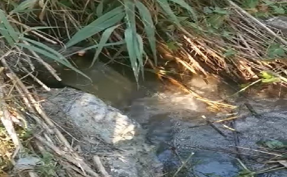 “A Belvedere acqua nera dal tubo di scarico del depuratore”