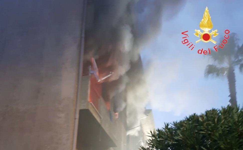 In fiamme un appartamento al primo piano di una palazzina popolare. Sul posto, oltre ai vigili del fuoco, i Carabinieri per gli adempimenti di competenza