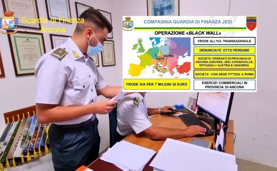 ANCONA – Con l’operazione denominata “Black wall”, i finanzieri della Compagnia di Jesi (Ancona) hanno scoperto una maxi evasione Iva per 7 milioni di euro sull’acquisto di 30 milioni di euro di prodotti elettronici. Otto le persone denunciate per frode fiscale e riciclaggio con sequestri preventivi per 4 milioni di euro. Nelle scorse settimane eseguite numerose perquisizioni e sequestri nelle Provincie di Ancona, Fermo, Macerata, Udine e Cosenza nei confronti di italiani e stranieri coinvolti in un’ingente frode e nel riciclaggio di proventi illeciti.