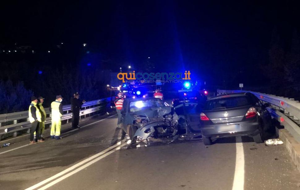 COSENZA – Un tragico incidente stradale si è verificato questo pomeriggio nei pressi del cimitero di Cosenza e ha provocato la morte di un anziano e il ferimento di due persone. L’incidente ha visto coinvolte due automobili, una Fiat Punto e un Opel Astra che, per cause in corto di accertamento, si sono scontrate violentemente tra di loro. Attualmente la strada Statale 107 “Silana Crotonese” è temporaneamente chiusa al traffico, in entrambe le direzioni, al km 34,700 proprio nei pressi del cimitero cittadino. Il traffico è stato deviato sulla viabilità secondaria mediante uscita obbligatoria al km 34,200 per chi viaggia in direzione Crotone e al km 34,900 per chi viaggia in direzione Paola.