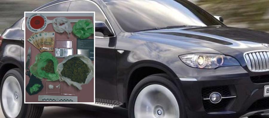 Lo fermano mentre sfreccia su una BMW. Poi gli trovano droga in auto e in casa