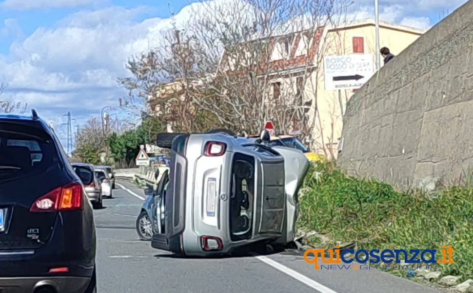 Un’autovettura è finita su un fianco. L’incidente è avvenuto sulla statale 18 tirrenica a poche centinaia di metri del bivio Sud di San Lucido