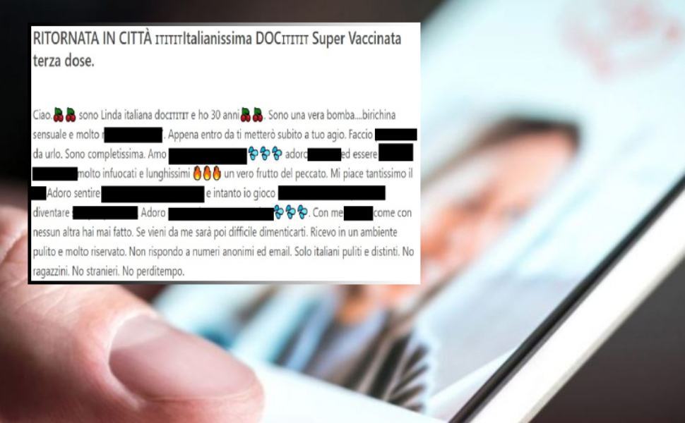 Sul sito dove pubblica il suo annuncio (raggiungibile da chiunque facendo una semplice ricerca su Google), compare in lingerie sexy con i fianchi in bella mostra.