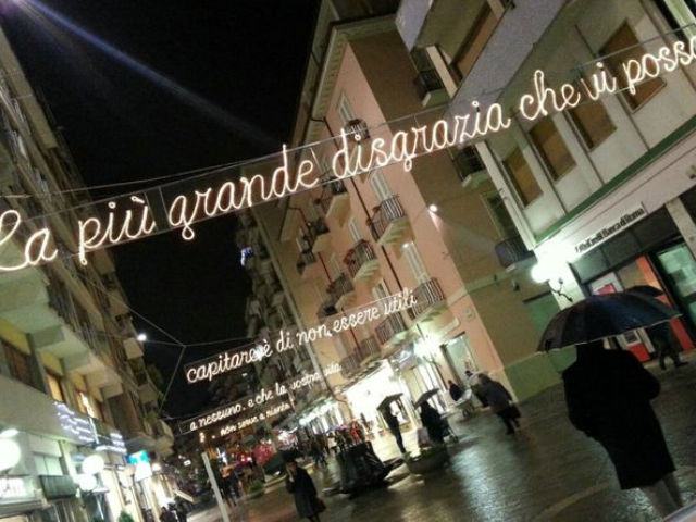 scoperto un attento frequentatore del villaggio virtuale, che impegnato in una “vasca” sul salotto buono della città di Cosenza, s’è accorto che su corso Mazzini c’è stato brutto frontale con il congiuntivo che sta alla fine della celebre frase di Raoul Follereau, appesa a mò di luminaria a una delle estremità del salotto buono di Cosenza. la notizia la riporta il collega Michele Giacomatonio su, Corriere della Calabria. Su corso Mazzini, infatti, sono comparse delle frasi composte da lucine, tese da un palazzo all’altro. Una di esse propone la celebre affermazione del filantropo francese che invita a dare un senso alla propria esistenza. La frase esatta ammonisce che “la più grande disgrazia che vi possa capitare è quella di non essere utili a nessuno, e che la vostra vita non serva a niente”, e però l’ammonimento presentato ai cosentini in forma di luce natalizia sbaglia e si conclude con un “non serve a niente”. Classico scivolone grammaticale che trasforma un congiuntivo coniugandolo al presente. La frase luminosa resta lì appesa parecchio, prima che qualcuno nelle sale del Comune se ne accorga, comunque abbastanza da consentire ai feroci cosentini di fotografare e postare la frase sgrammaticata su Facebook, alimentando una satira natalizia che avrà un nuovo spunto. Ovviamente da Palazzo dei Bruzi si corre ai ripari, e non potendo cambiare la grammatica, si cambia la scritta luminosa, correggendo l’errore. Adesso i cosentini che sul corso principale alzassero gli occhi al cielo, vedrebbero la frase corretta. Ma in tema di luci natalizie le novità sono anche altre. I celebri cerchi sono senza clamore migrati verso via Popilia e là dove facevano bella mostra lo scorso anno, adesso è comparsa una sorta di grande rete luccicante. E l’ironia è esplosa, immaginando che quella rete, posta sopra piazza Fera-Bilotti, possa tornare utile nel caso i Maya avessero ragione circa la fine del mondo. Se dal cielo dovessero piovere meteoriti, la rete luminosa li farebbe rimbalzare, salvando così la piazza e con essa anche il più grande appalto della città. Tuttavia i Maya assai probabilmente saranno smentiti, e anche quest’anno arriverà il Natale. Una occasione per essere più buoni, magari anche con la lingua italiana.