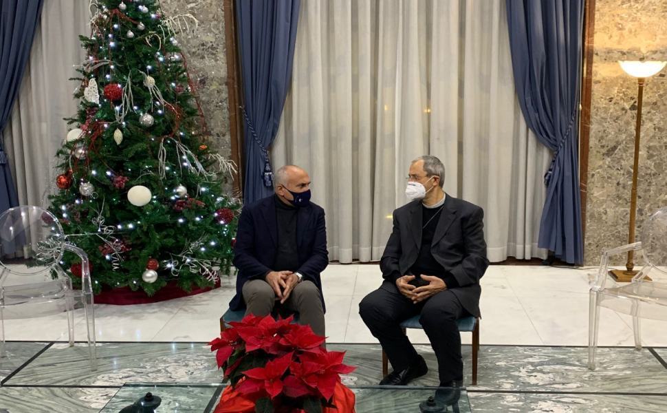 L’arcivescovo di Cosenza-Bisignano, mons. Nolè, in visita a Palazzo dei Bruzi, incontra il sindaco Franz Caruso. Scambio di auguri per il Natale