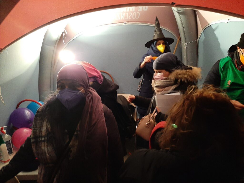 La befana è arrivata a Cosenza e nel suo sacco ha portato dolci sorprese e tanti vaccini anticovid per i bambini cosentini e i loro genitori. L’idea promossa dall’Asp di Cosenza si è svolta ieri sera in piazza XI Settembre. Ad accogliere i bambini l’Associazione “Gianmarco De Maria” che prima della inoculazione del vaccino ha distribuito loro dolci e giochi vari. L’iniziativa che si è svolta dalle ore 18,30 fino alla mezzanotte e un minuto, è stata accolta favorevolmente dall’amministrazione comunale bruzia come ha dichiarato l’assessore alla salute pubblica Maria Teresa De Marco. Mentre il responsabile del Dipartimento di Prevenzione dell’Asp di Cosenza, il dottor Antonino Scavelli, ha ribadito l’importanza e l’efficacia dei vaccini contro il Covid.