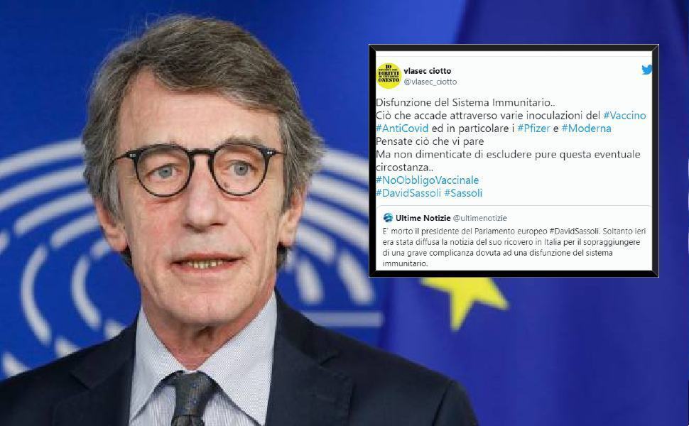 Si scatena in queste ore sui social il delirio che sta mettendo in relazione la morte del presidente del Parlamento Europeo con tesi complottiste