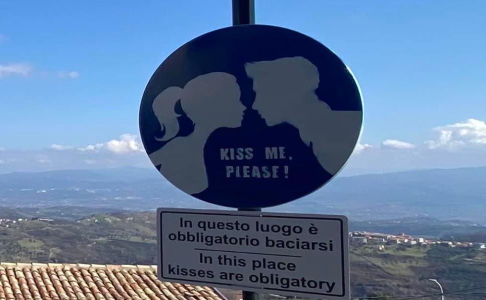ROTA GRECA (CS) – “Abbiamo installato un nuovo segnale d’obbligo: Kiss Me, Please – obbligo di bacio”. Lo scrive il comune di Rota Greca tramite Facebook.