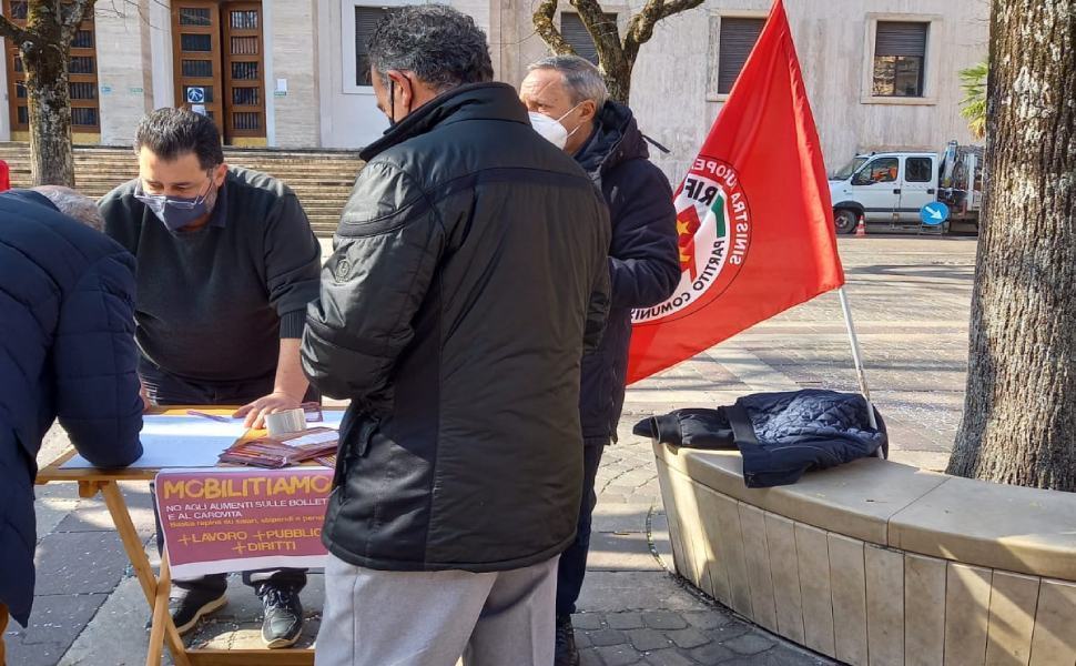 COSENZA – La mobilitazione a Cosenza che si è svolta venerdì e sabato, rientra nella campagna nazionale del Partito della Rifondazione Comunista contro gli aumenti delle bollette e il ripristino della legge Fornero e per costituire dei Comitati popolari contro il carovita. Nel cosentino la campagna è partita sabato 12 da Verbicaro, nella Piazza Giannino Losardo “indimenticato compagno del PCI che per le sue idee di difesa dei lavoratori e dei più bisognosi è stato trucidato dalle cosche di ‘ndrangheta del Tirreno”. Poi è proseguita a Rovito, Cosenza e Rossano e nei prossimi giorni si terrà in decine di piazze della Provincia, dal Savuto alla Valle del Crati, dal Pollino allo Ionio.