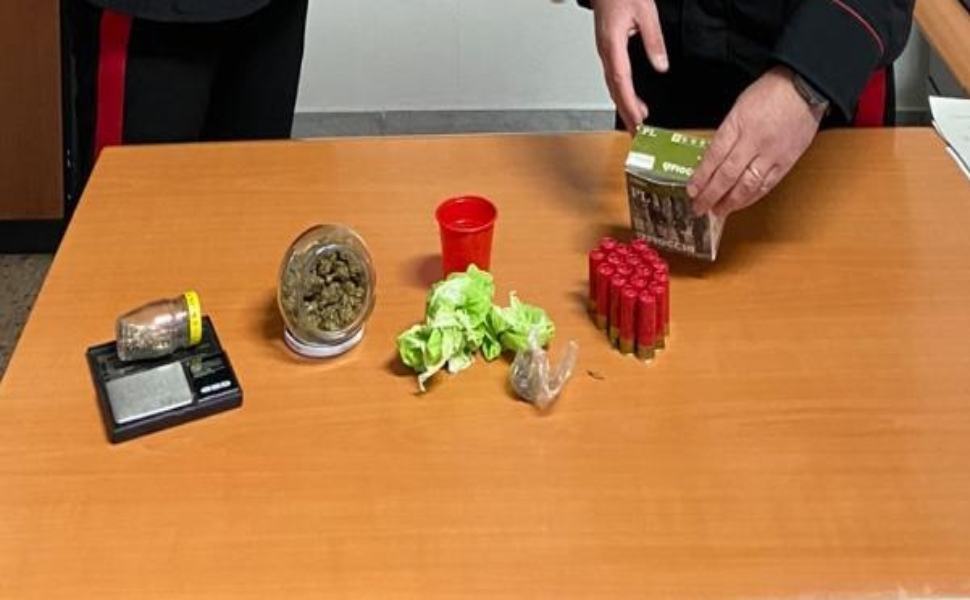 L’uomo è stato deferito in stato di libertà per “detenzione ai fini di spaccio di sostanze stupefacenti” e per “detenzione abusiva di munizioni”