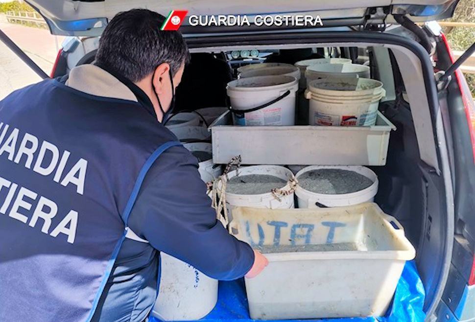 Nell’auto di un uomo trovati 23 secchi con un totale di circa 460 chili di novellame di sarda. L’uomo sanzionato con 25mila euro