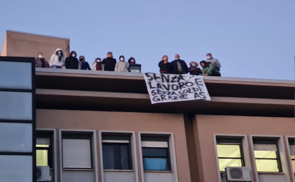 Niente stipendio, i lavoratori protestano sul tetto dell’ospedale di Rossano