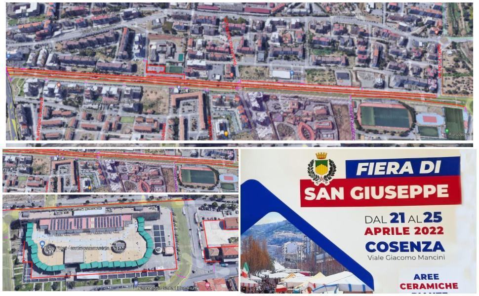 La Fiera di San Giuseppe avrà due grandi location espositive: la zona iniziale di Viale Mancini dai campetti di calcio del Marca e Pro Cosenza adiacenti al Carcere, una parte di Via Pio La Torre e tutto il tratto del viale Mancini fino alla Sopraelevata e al Liceo Scientifico Scorza. La seconda location è quella che include tutta Piazza Matteotti e i Due Fiumi, quindi anche un tratto di Via Popilia che si trova alle spalle dei due Fiumi e via Baarlam di Calabria.