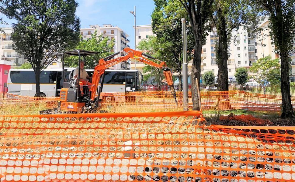 In particolare, i lavori del secondo lotto hanno avuto inizio con il ripristino della recinzione di cantiere. Successivamente è stata livellata la prima area che ospiterà il campo di basket ed il campo di padel, in prossimità del liceo scientifico Scorza. Sono stati effettuati i tracciamenti dei due campi e nella prossima settimana saranno messi in opera i primi materiali per la realizzazione dei campi di gioco. Si proseguirà nel completamento delle due infrastrutture sportive per poi proseguire con la sistemazione dell’area da nord verso sud, dove verrà realizzato lo skate-park. A breve, invece, sarà completato il lotto n.1, a meno della semina erbosa e dell’impianto di irrigazione, che per ragioni di praticità saranno completati nel momento in cui saranno al termine i lavori del secondo lotto, previsti per il prossimo autunno.