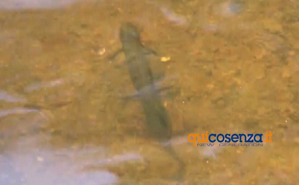 Anche la tecnologia, dunque, aiuta i pellegrini. La prima sosta è alla fontana vicino al laghetto che si trova in quota, il cosiddetto “Laghicello”. Dopo un rifornimento d’acqua fresca c’è il tempo per qualche foto agli anfibi che si trovano solo in pochi luoghi sull’appennino paolano: “sono i tritoni alpestri (in foto in basso) della sottospecie “inaspettato” – spiega ancora la guida – scoperti negli anni ’80 da uno studioso francese”. Sembrano pesciolini scuri, ma hanno le zampe e ce ne sono tanti, in acqua e a riva.