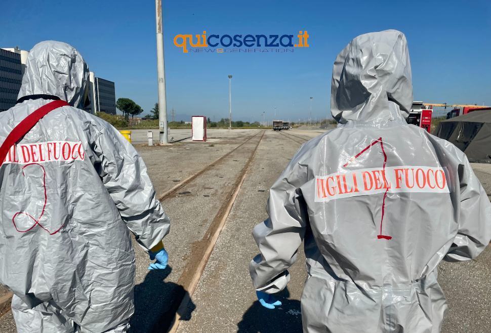COSENZA – Le tende militari montate nel grande cortile di Vaglio Lise ricordano l’arrivo in città dei primi vaccini anticovid, quando Astrazeneca era soltanto per gli audaci. Ora che da quel tempo assurdo sono trascorsi parecchi mesi, accanto alle mimetiche dell’Esercito ci sono pure le divise (rassicuranti) dei Vigili del fuoco. Il virus che ha messo in ginocchio il mondo intero lascia spazio a un attacco radioattivo. Per fortuna il rischio (almeno oggi) non è reale e quella che sta per cominciare è soltanto una simulazione. L’allarme scatta intorno alle undici, quando al 115 giunge una richiesta d’intervento. Il primo reggimento Bersaglieri comunica che su un convoglio ferroviario è stata rinvenuta una borsa contenente sostanze radioattive. La probabilità che i passeggeri si siano contaminati è alta. Dal comando provinciale di viale della Repubblica parte una lunga colonna di mezzi. Altre camionette lasciano il presidio militare di via Panebianco. Nel frattempo, viene chiesto a Trenitalia di deviare il vagone coinvolto su un binario morto dello scalo ferroviario. La sala operativa mobile impartisce gli ordini. Il comandante dei Vigili del fuoco Giampiero Rizzo e il colonnello del primo reggimento Bersaglieri Francesco Ferrara coordinano gli interventi. Inizia la vestizione del personale destinato alla prima linea. Tuta, guanti, maschera protettiva. Il caldo non aiuta.