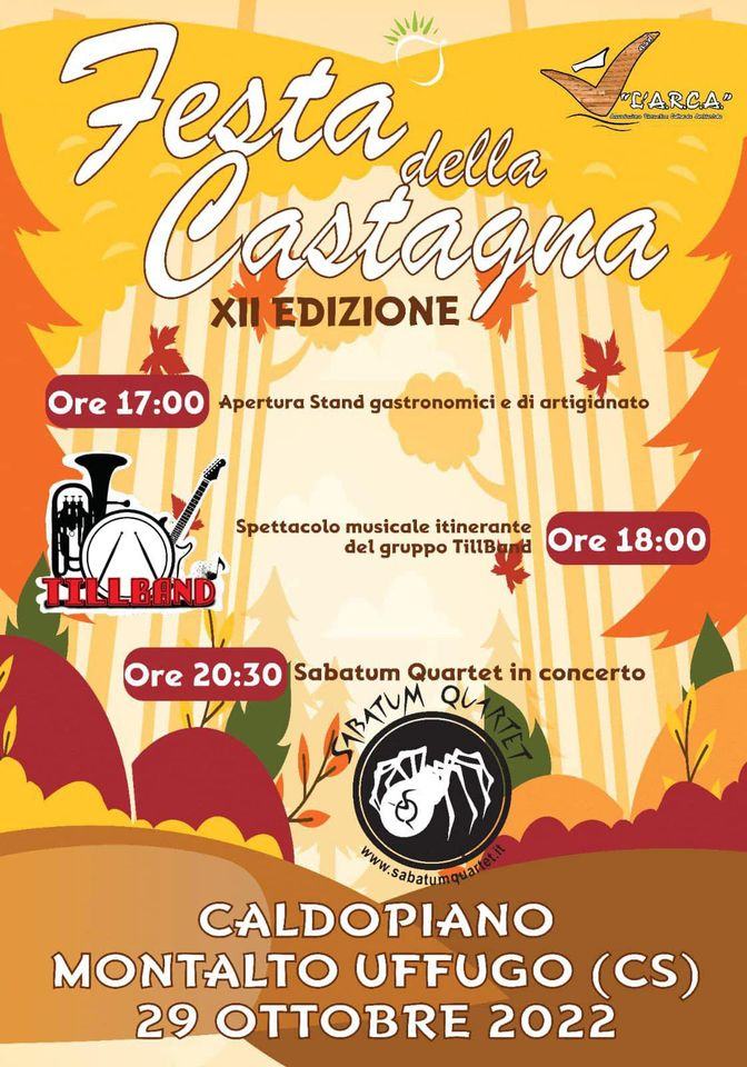 MONTALTO UFFUGO – Ritorna nella frazione di Caldopiano di Montalto Uffugo, dopo due anni di interruzione a causa della pandemia, la Festa della Castagna. L’ormai tradizionale appuntamento autunnale – che approda alla dodicesima edizione – è organizzato da L’A.R.C.A., associazione impegnata da anni in azioni di promozione, tutela e salvaguardia del territorio. I volontari annunciano con infinita gioia e soddisfazione il ritorno della Festa, con la quale si vuole dare un contributo concreto a quel processo di rinascita e ripartenza che ognuno di noi vuole vivere dopo i due durissimi anni di restrizioni dovute all’emergenza sanitaria, anche per un’economia locale piegata dalla pandemia prima e ora dalla crisi energetica.