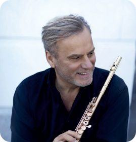 Andrea Griminelli ha studiato con flautisti leggendari come Jean-Pierre Rampal e Sir James Galway, che lo ha definito “il più grande flautista salito alla ribalta della scena musicale da tanti anni”. Il suo debutto, a livello internazionale, avvenne dalla “porta principale” e risale al 1984 quando, venticinquenne, affiancò Luciano Pavarotti nel memorabile concerto al Madison Square Garden di New York. Con il grande tenore modenese, Griminelli intraprenderà poi un’intensa collaborazione anche negli anni successivi, nei concerti di Londra, nel 1990 (Hyde Park), al Central Park di New York, nel 1993, e, più avanti, alla Torre Eiffel di Parigi e nella Piazza Rossa di Mosca. Artista particolarmente eclettico, il flautista non ha disdegnato inoltre collaborazioni ed incursioni nel pop, nel jazz ed in altri territori musicali, con artisti del calibro di Elton John, James Taylor, Branford Marsalis e Ian Anderson, leader dei Jethro Tull. Ad una ricca produzione discografica e ad un’intensa attività concertistica, Andrea Griminelli affianca da sempre l’attività solistica sotto la guida dei più importanti direttori d’orchestra, come Carlo Maria Giulini, Zubin Metha, Georges Prêtre e Gustavo Dudamel.