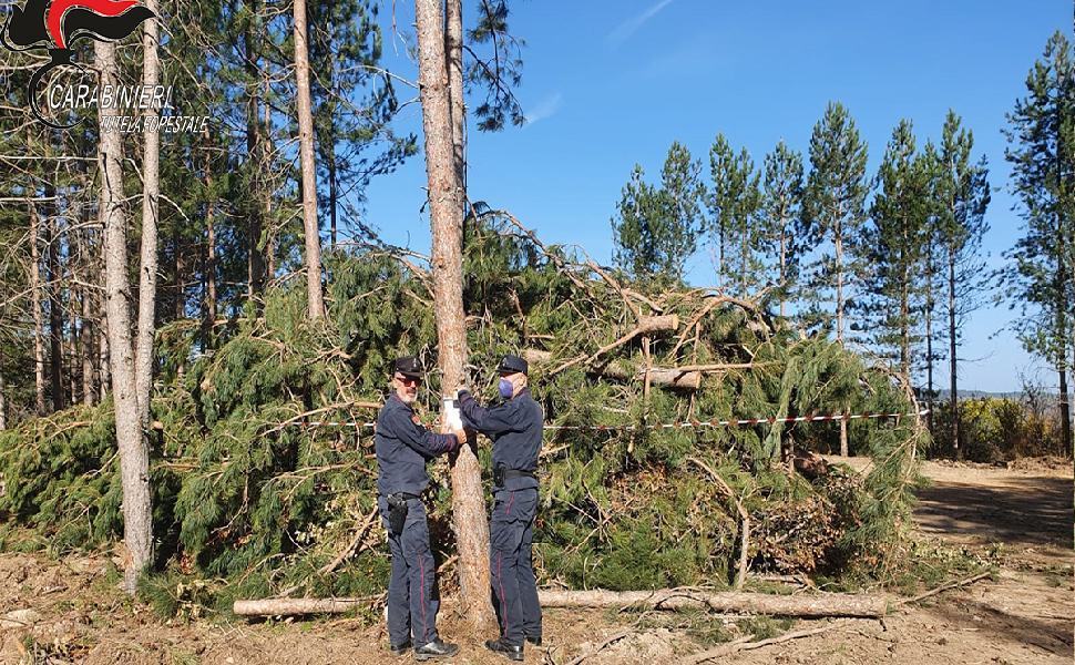 Le piante tagliate, con motosega e con l’ausilio di mezzi meccanici utilizzati per l’esbosco, appartenevano ad un altro soggetto proprietario di una particella limitrofa a quella autorizzata regolarmente. A seguito di tali accertamenti si è proceduto al sequestro dell’area, circa 4 ettari, e di due cataste di legna di Pino Laricio tagliate e trovate sul posto pronte per essere portate via. Per tale attività abusiva, oltre alla sanzione amministrativa prevista di oltre 20mila euro, sono state denunciate tre persone per furto aggravato, il legale rappresentante della ditta boschiva esecutrice del taglio, il direttore dei lavori (denunciato anche per falso) e il proprietario del bosco.
