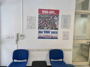 Il manifesto di una vecchia campagna di prevenzione affisso all’interno della sala d’attesa del centro