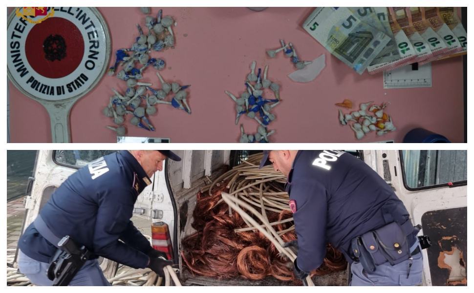 Nella circostanza sono state rinvenute 1,39 tonnellate di rame, di provenienza illecita, all’interno di un parcheggio privato e n. 75 dosi di cocaina già confezionate e pronte per la vendita, occultate all’interno di un corte condominiale. Tutto il materiale rinvenuto è stato posto sotto sequestro a disposizione dell’AG competente. Una persona è stata denunciata per ricettazione.