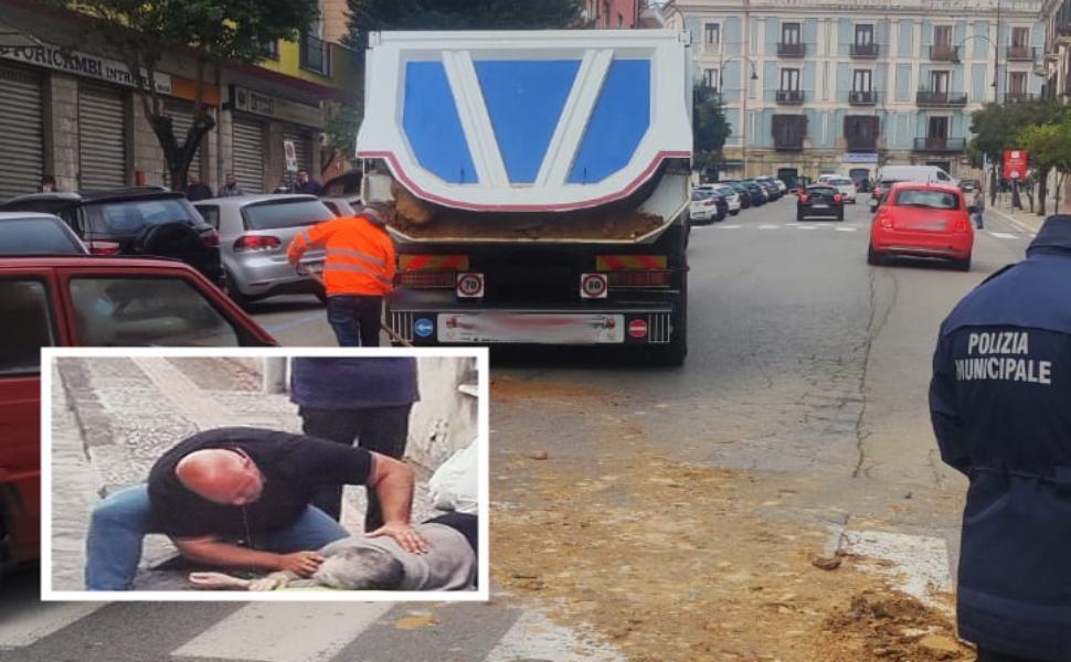 La Polizia Municipale di Cosenza era intervenuta per un camion che aveva perso il carico su viale Trieste, quando un operaio sessantenne che stava ripulendo la sede stradale, ha accusato un malore