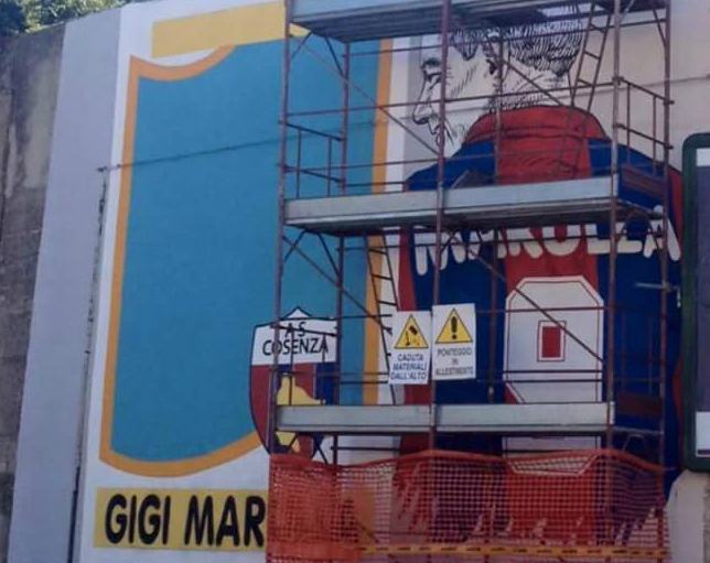COSENZA – Il sindaco Mario Occhiuto lo aveva annunciato qualche tempo fa ed ha mantenuto l’impegno preso con la città dopo la scomparsa dell’amato campione del Cosenza Calcio, Gigi Marulla. Stamattina alle 11, questa volta alla presenza della famiglia di Marulla che in precedenza si trovava fuori sede, il primo cittadino presenterà il nuovo murales realizzato accanto alla già nota gigantografia della figurina-cult a firma di Flavio Favelli. Il progetto delle residenze artistiche The Bocs-Art non si è infatti fermato neanche a ferragosto, e questa volta ha visto coinvolto un importante street artist italiano.