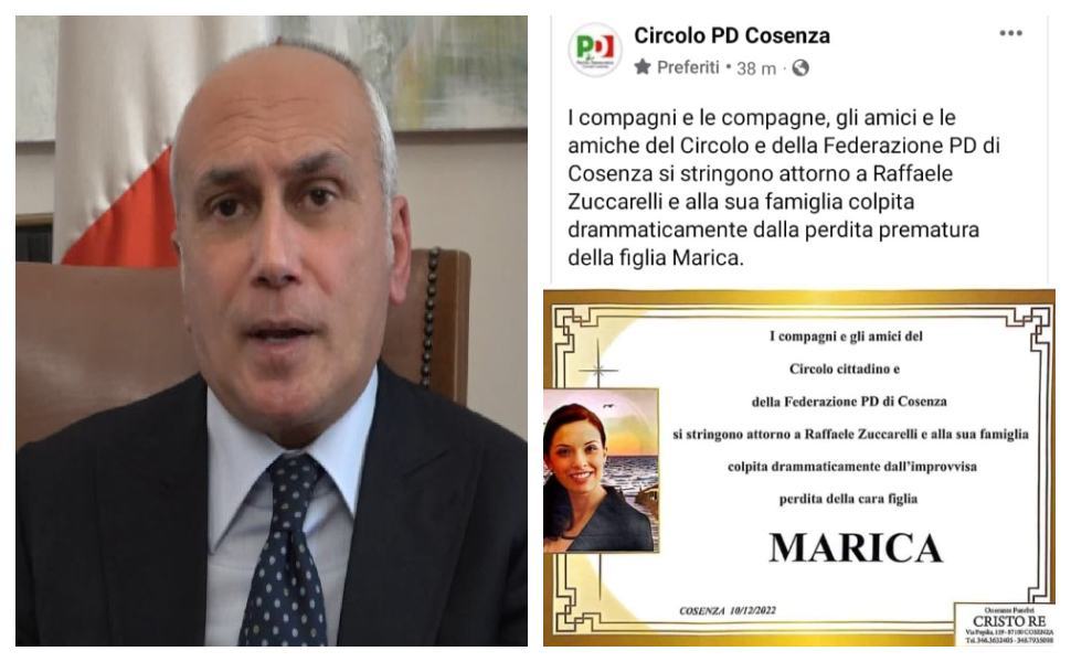 COSENZA – “Quando si spegne una giovane vita, nessuna parola può essere appropriata, perché in casi come questo, nessuna parola può essere di conforto a chi prova un dolore incommensurabile”. Lo ha detto il Sindaco Franz Caruso nell’esprimere il più profondo cordoglio a Raffaele Zuccarelli, ex consigliere comunale ed esponente di spicco del PD cosentino, per la perdita improvvisa della figlia Marica.