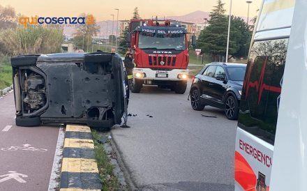COSENZA – Tamponamento su viale Magna Grecia a Cosenza nei pressi delle ex cupole geodetiche. Il sinistro è avvenuto nel pomeriggio ed ha coinvolto due autovetture. Nello specifico si tratta di un’Audi e una Smart. Secondo quanto ricostruito la Smart, guidata da una ragazza sulla 30ina, avrebbe tamponato l’Audi. Le dinamiche dell’incidente sono ancora da chiarire. A causa dell’impatto la donna ha perso il controllo della sua autovettura finendo sul cordolo che delimita la pista ciclabile. La vettura si è ribaltata finendo su un fianco.