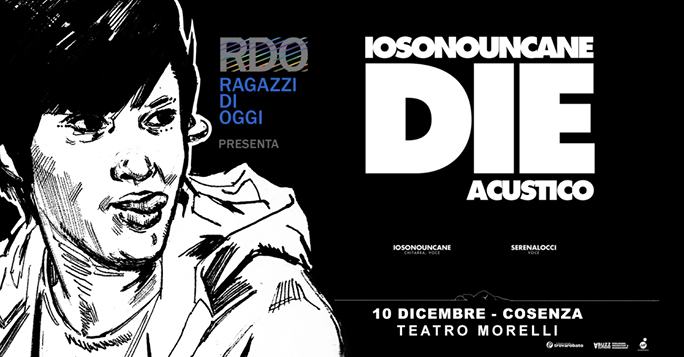 Ospite del primo appuntamento della rassegna, giovedì 10 Dicembre al Teatro Morelli di Cosenza, è Jacopo Incani, classe 1983, musicista nato in Sardegna. Trasferitosi a Bologna, dove tuttora è di base, dà vita a Iosonouncane. Pubblica nell’ottobre 2010 il suo disco d’esordio “La Macarena Su Roma” (Trovarobato), che ottiene ampi riconoscimenti e coagula attorno al musicista un grande consenso di critica e un pubblico sempre più numeroso. Vince il premio Fuori dal Mucchio 2011 e nello stesso anno è invitato a suonare all’Ariston di Sanremo per il Premio Tenco. Conclude il tour de La Macarena Su Roma il 22 settembre 2012 dopo quasi 200 concerti. Torna per una breve parentesi per un tour in formazione trio di sei date (tre tour) nel dicembre del 2013. Durante il 2014 lavora in studio con Bruno Germano e conclude la produzione di “Die”, il nuovo album uscito a marzo 2015, acclamato da pubblico e critica come uno dei dischi dell’anno, finalista al premio Tenco. Il 2 dicembre 2015 inizierà il tour in acustico. Gli arrangiamenti stratificati e sontuosi dell’album lasceranno posto alle canzoni scarnificate. Sul palco con Iosonouncane ci sarà Serena Locci corpo e anima femminile di “Die”. Due voci si incontreranno, una femminile e una maschile, così come nella narrazione istantanea dell’album. Tutte le date di Die Acustico verranno registrate e non si prevedono repliche con il nuovo anno.
