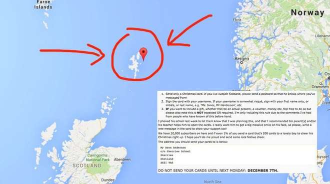 L’artista internazionale il giorno dell’Epifania regalerà l’opera al bambino che vive senza amici in un’isola della Scozia.