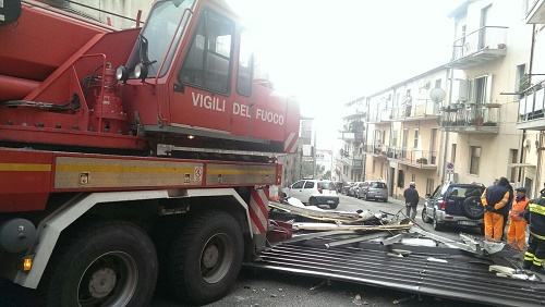 CATANZARO – Un tetto divelto e piombato sulle autovetture in sosta, cornicioni, vetri alberi e pali della pubblica illuminazione pericolanti. Sono molti i danni registrati a Catanzaro a causa del forte vento che ha letteralmente investito la citta’ nel corso della notte e che ancora non si e’ placato. Il centralino dei vigili del fuoco e’ stato tempestato da diverse richieste di aiuto e di messa in sicurezza, al punto che sono state incrementate le squadre in servizio che stanno effettuando sopralluoghi ed interventi anche nel corso della mattinata. La situazione piu’ critica e’ stata registrata nel quartiere Sama’, dove la furia del vento ha scaraventato la copertura di una casa sopra le auto in sosta. Ingenti i danni, ma per fortuna non ci sono state conseguenze per le persone. Danni anche nel centro della citta’ e nei quartieri periferici, con diverse segnalazioni di pericolo giunte ai vigili del fuoco che stanno intervenendo su alberi, insegne luminose e cornicioni pericolanti come quelli del palazzo dell’ex Bnl che hanno ceduto e le porte della Galleria Mancuso che sono state letteralmente sradicate. Le previsioni meteo indicano un peggioramento in tutta la Calabria a partire dalle prossime ore, non solo per via del vento particolarmente forte, ma anche per l’arrivo di una perturbazione che dovrebbe portare temperature rigide e neve fino a bassa quota. Disagi per il vento molto sostenuto anche sulla zona jonica della provincia di Reggio Calabria e nel cosentino.