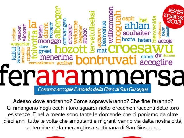 “Una partita tra il Cosenza Calcio di Manolo Mosciaro e una squadra di migranti che abitano nei capannoni di via Popilia; un’assemblea cittadina su tematiche di grande attualità come il business dell’accoglienza, la condizione dei rifugiati e la questione del campo rom di Vaglio Lise. E poi libero accesso ad internet per tutta la fiera di San Giuseppe, ambulatorio popolare, servizio di consulenza legale, dormitorio e un piatto caldo self service per ambulanti e migranti che passeranno dalla nostra città in quei giorni. Inoltre, un pezzetto di fiera sarà riservato ad associazioni, produttori equi e solidali, liberi artigiani. Questo e molto altro sarà da venerdì 15 a martedì 19 marzo Fera Ara Mmersa, l’accoglienza dal basso nell’area del parco sociale tra viale Mancini e via Popilia, organizzata quest’anno da una brigata spontanea formata da liberi cittadini, Casa dei Diritti Sociali, Rete Economia Solidale Utopie Sorridenti, Cooperativa Sociale Soccorso Speranza, Centro Culturale Arahma, Studenti Medi, C.P.O.A Rialzo, Radio Ciroma, La Terra di Piero, Ultrà Cosenza Curva Sud e casa editrice Coessenza. Le manifestazioni che si svolgeranno, saranno incentrate sui temi del rispetto della dignità umana e dell’ambiente, della produzione e del consumo critico, solidale, sostenibile ed a rifiuti zero. La cucina sarà curata dai migranti stessi. Gli alimenti, rigorosamente locali, proverranno dalla rete di agricoltori partecipanti alla Fera Ara Mmersa.