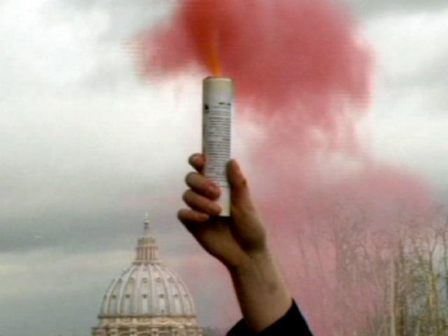 Prima un gruppo di femministe ha dato luogo ad una manifestazione colorata con fumogeni rosa fatti scendere sulla piazza in una giornata molto piovosa a Roma (c’erano attiviste vestite anche da cardinali) e poi un’attivista del gruppo Femen a seno scoperto ha creato un po’ di scompiglio nell’apparato di sicurezza e sorveglianza presente in piazza e in tutta roma. Ma la protesta è continuata anche nel pomeriggio, raggruppando alcune femministe provenienti da diversi paesi del mondo, tra i quali anche Australia, Stati Uniti d’America, Gran Bretagna, che, armate semplicemente di fumogeni rigorosamente rosa e della loro voce, si sono date appuntamento su un balcone che dà proprio su Piazza San Pietro. Erano lì per chiedere che la Chiesa in un futuro non troppo lontano possa prendere decisioni importanti, come l’ordinazione a cardinale delle donne. I fumogeni rosa volevano essere un richiamo alla fumata bianca che uscirà dal camino della Cappella Sistina all’elezione del papa, sperando che sarà un pontefice più attento alle questioni femminili.