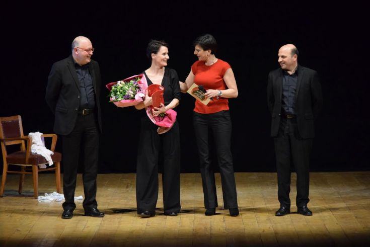 Una grande prova d’attrice, che ha praticamente prestato voce, corpo e anima a tre donne diversissime tra loro: con il solo supporto della mimica, della dizione e della presenza scenica, triplicando se stessa in un monologo che fa ridere, commuovere, riflettere in maniera mai scontata e banale. Lo spettacolo, inserito nell’ambito del cartellone di prosa della rassegna “Vacantiandu – Città di Lamezia Terme”, diretta da Nicola Morelli, Walter Vasta e Sasà Palumbo, ha replicato lunedì con una matinée dedicata agli studenti delle scuole superiori lametine. Sul palco, a fine spettacolo, i direttori artistici della rassegna hanno consegnato alla bravissima attrice la maschera rossa simbolo della kermesse, realizzata dall’artista lametino Alessandro Cavaliere.