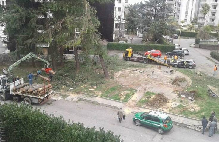 COSENZA – Cittadini indignati davanti allo scempio che ieri si è materializzato davanti agli occhi di chi, ha visto la furia del vento, sradicare e piegare numerosi alberi. E da più parti si sollevano polemiche legate ad alcune zone delle città, sia di Cosenza che di Rende, in cui non è mai stata realizzata l’opera di potatura di alberi, diventati nel tempo giganti, e che ieri hanno ceduto alla violenza dello scirocco. Una utente ci ha segnalato, attraverso questa immagine, la situazione nel suo quartiere, Città 2000, dove ieri si è verificata la caduta di alcuni alberi, che oggi, sono stati puntualmente… eliminati. Una piccola area verde cittadina, sfregiata non solo dalle calamità, ma ora anche dall’uomo che ha pensato bene, di intervenire come sempre a posteriori, e di tagliare completamente le altezzose piante. “Ho comprato qui casa, nel 1997 proprio perchè c’era un’area verde con questi meravigliosi alberi e oggi, li stanno levando tutti…sono provata“.