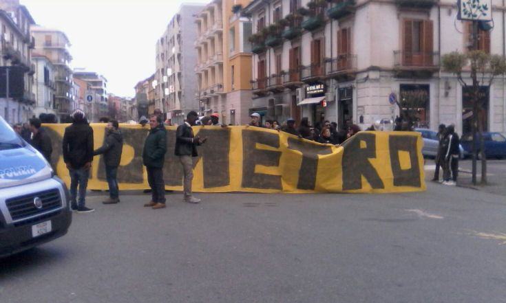 COSENZA – Corteo di protesta contro la metro leggera oggi pomeriggio a Cosenza, a pochi passi dal cinema Modernissimo, sede della presentazione del progetto (fissata per le 17) sulla Metropolitana Cosenza-Rende-Unical. Un corteo pacifico, composto da un centinaio di persone tra comitati e cittadini, in marcia verso il luogo che sta ospitando il presidente della Regione Mario Oliverio. Di fronte la sede presente un nutrito numero di forze dell’ordine a presidiare la zona e vietare l’ingresso ai contestatori.
