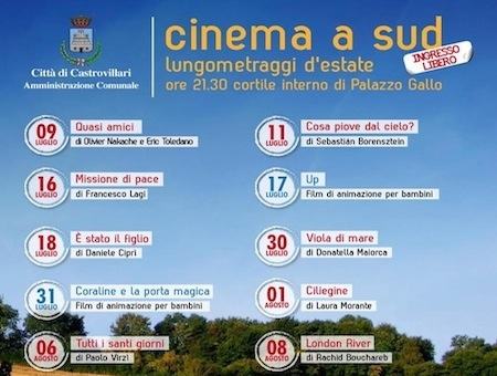 Le altre pellicole in programma, sempre a partire dalle ore 21,30 ogni martedì e giovedì, tutte ad ingresso libero, riguardano il 9 luglio “Quasi Amici” di Olivier Nakache ed Eric Toledano; il 16 sarà la volta di “Missione di Pace” di Francesco Lagi; il 17 “Up” film di animazione per i più piccoli; il 18 “E’ stato figlio” di Daniele Cipri; il 30 luglio “Viola di mare” di Donatella Maiorca; il 31 luglio per i più piccoli “CoraLine e la porta magica”; il 1° agosto “Ciliegine” di Laura Morante; il 6 agosto “Tutti i santi giorni” di Paolo Virzi; il 20 verrà proiettato “Sette psicopatici” di Martin McDonagh; il 21 agosto “Zambezia” film di animazione per i più piccoli; il 22, invece, sarà la volta di “ L’amore dura tre anni” di Frèdèric Beigbeder; il 3 settembre sarà in programma “I più grandi di tutti” di Carlo Virzì ed il 5 settembre “Viva la libertà” di Roberto Andò.