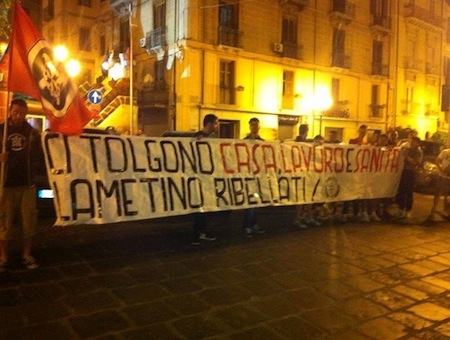 LAMEZIA – ‘Ci tolgono casa, lavoro e sanità. Lametino ribellati’. Questo il testo dello striscione esposto sabato sera dai militanti di CasaPound Italia sul Corso Numistrano a Lamezia per protestare contro le politiche sociali dell’amministrazione regionale e di quella comunale.