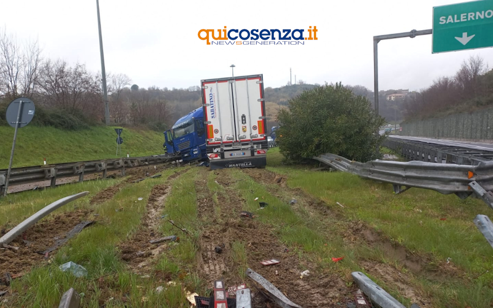 COSENZA – Incidente questa mattina lungo l’autostrada A2 del Mediterraneo a poche decine di metri dallo svincolo di per Cosenza Sud. Un mezzo pesante, che viaggiava in direzione Salerno, per cause ancora da accertare, si è intraversato schiantandosi contro le barriere di protezione tra le due corsie di marcia, poco dopo la galleria “Serra Spiga”.