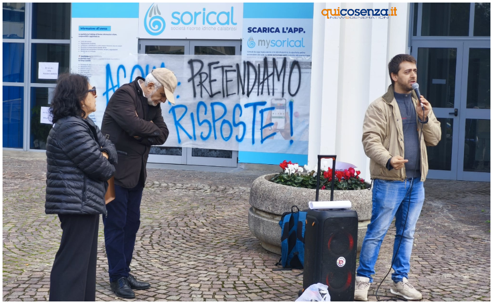 Uno striscione con un messaggio chiaro: “Acqua: pretendiamo risposte.” A prendere la parola, tra i tanti, Stefano Catanzariti dell’Unione Sindacale di Base (USB), che ha ribadito il senso della protesta: «Stamattina siamo qui davanti alla sede della Sorical per chiedere risposte. Non chiediamo più acqua, perché è un diritto. Pretendiamo che sia garantita. La situazione è diventata inaccettabile.»