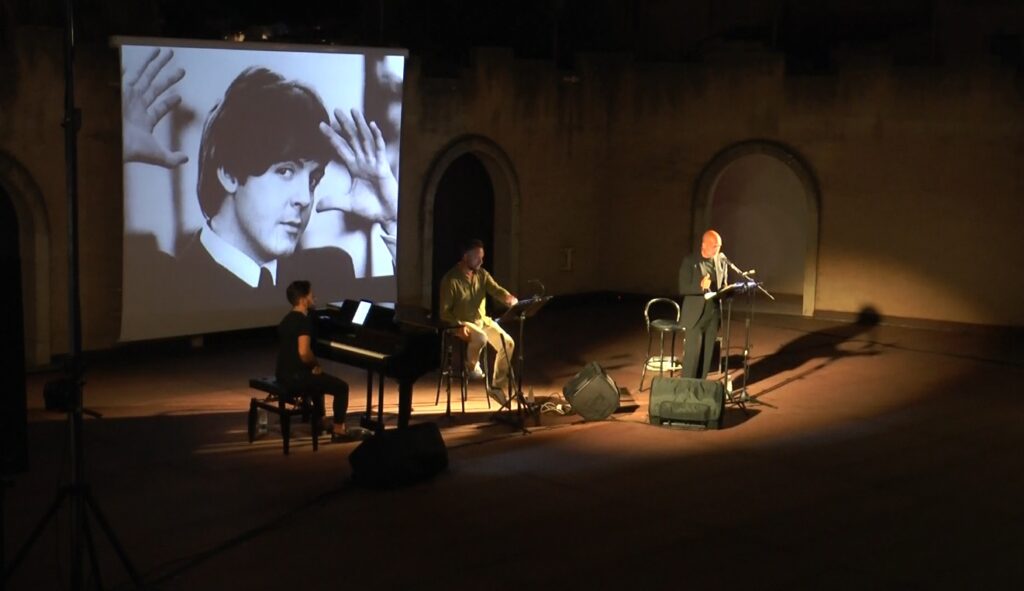 Accompagnato dal clarinetto di Rocco De Bernardis e dal pianoforte di Antonio Laviero, Tognazzi ha alternato la lettura di brani tratti dall’autobiografia di McCartney a esecuzioni musicali dei più grandi successi dei Beatles. Ricordi e quasi una lezione di musica. Ma in fondo la parte più importante è quella dello spettacolo: “In questo caso – ha detto Tognazzi – è un intrattenimento alto perché si parla di Paul McCartney e della sua esperienza con i Beatles che hanno rappresentato per tante generazioni un punto di riferimento. Dunque la lettura dei brani e la musica fanno sì che tutto diventi suggestivo.